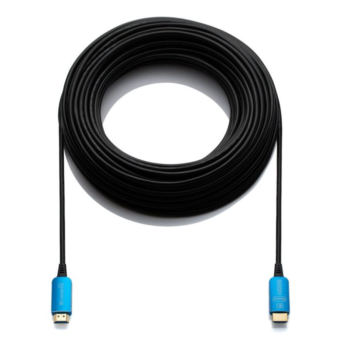 Optische Kabel haben eine höhere Bandbreite und eine schnellere Übertragung als die Kupferkerne normaler HDMI Kabel. Außerdem sind sie wesentlich unempfindlicher gegen Störungen. Das bedeutet, dass Längen zwischen 15 und 100 Metern kein Problem darstellen.